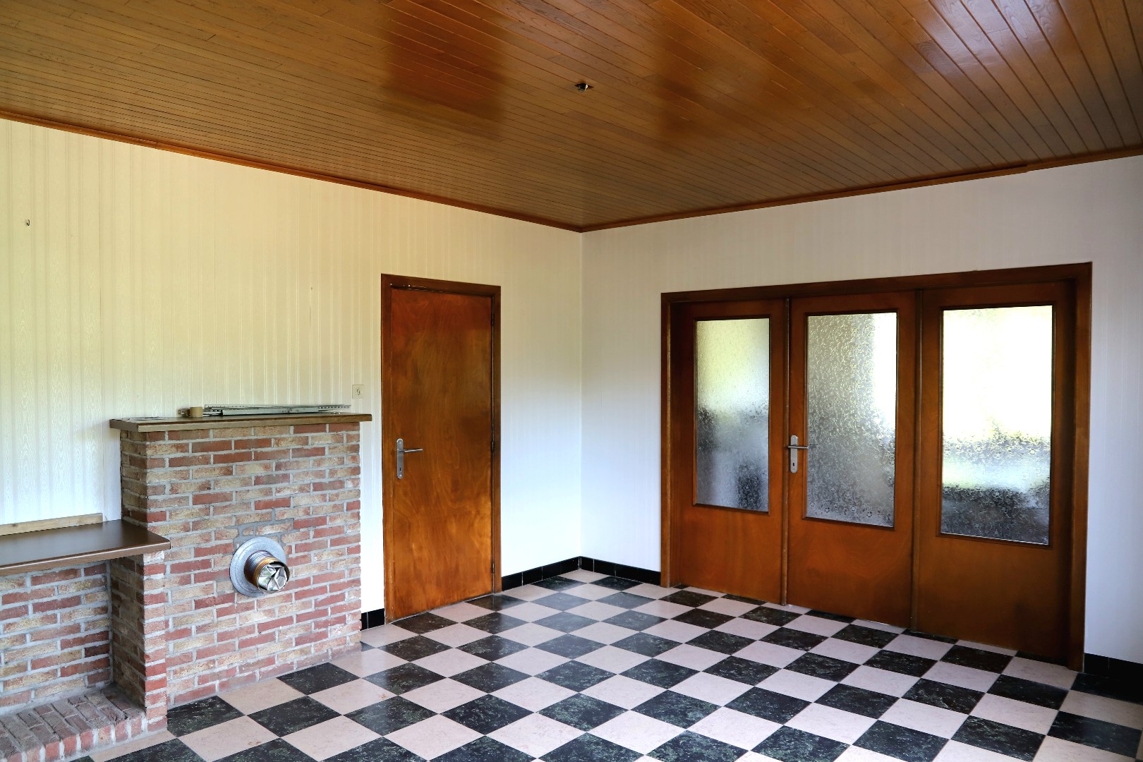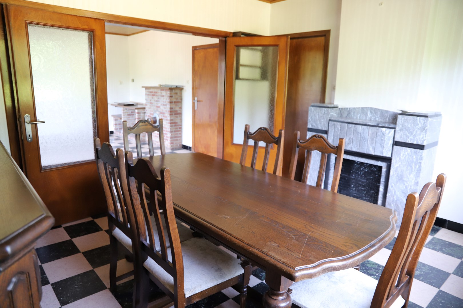 Gelijkvloers: Hal, woonkamer met een aparte eetkamer, gesloten keuken met alle nodige apparatuur, badkamer met een douche, bad en wc en als laatste een tweede leefruimte en een ruime berging.