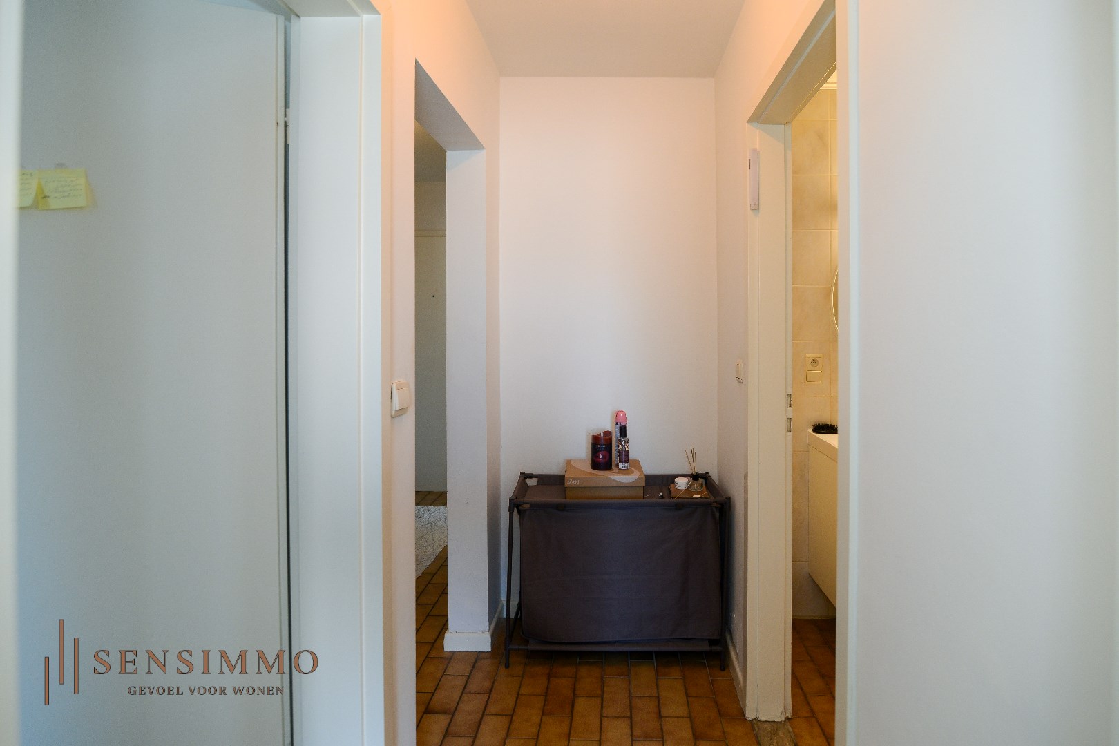 De indeling omvat een inkomhal, een apart toilet, een lichtrijke woonkamer met eetgedeelte dat rechtstreeks toegang biedt tot het gezellige terras aan de achterzijde, een keuken met ingebouwde elektrische toestellen, een praktische berging, een badkamer en twee ruime slaapkamers. Bovendien beschikt u over een privatieve autostaanplaats, wat een extra troef is in deze centrale ligging.