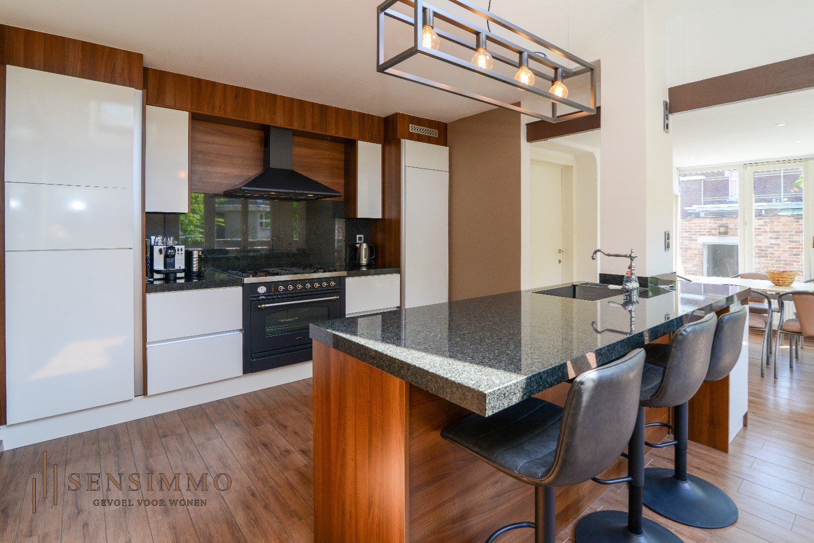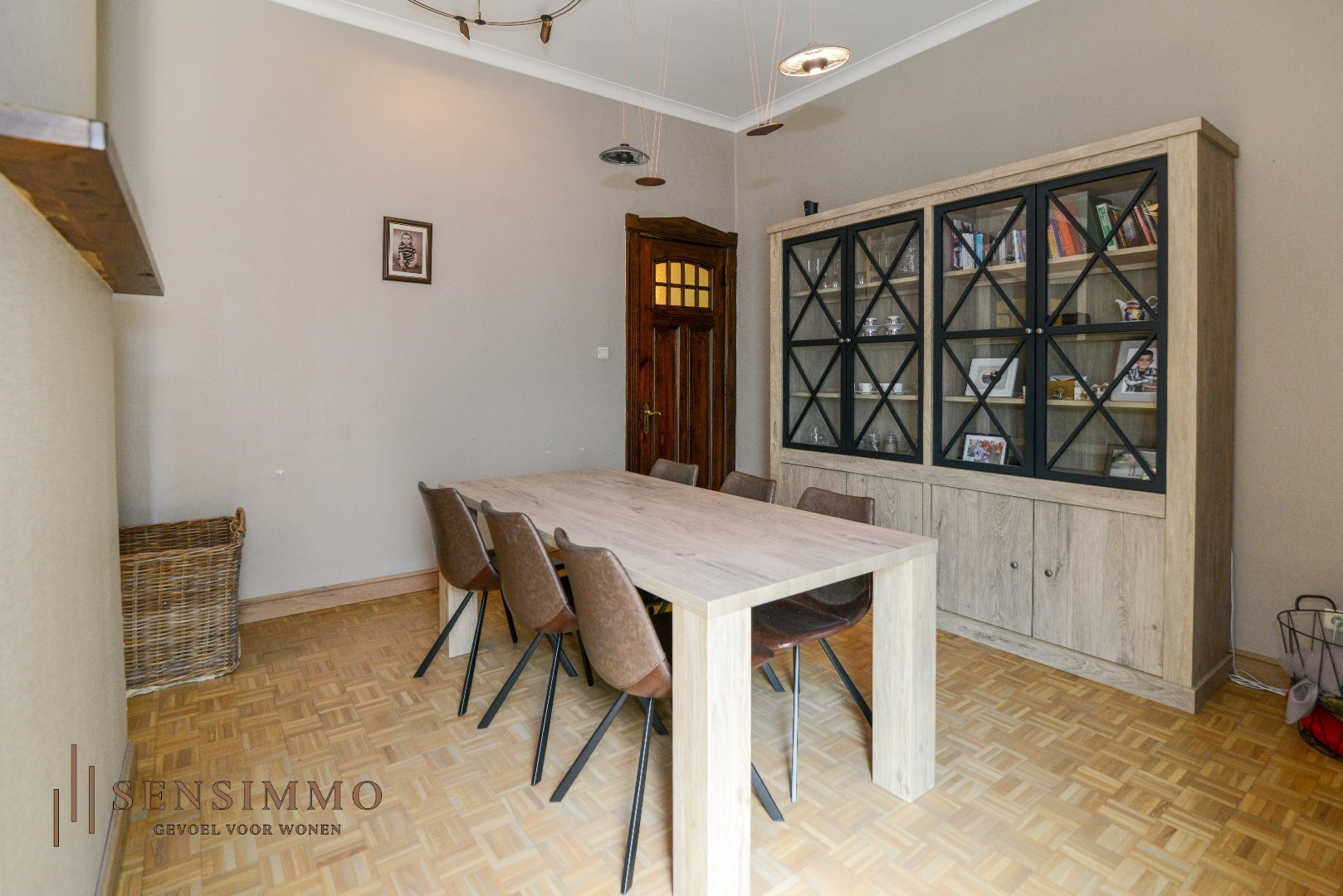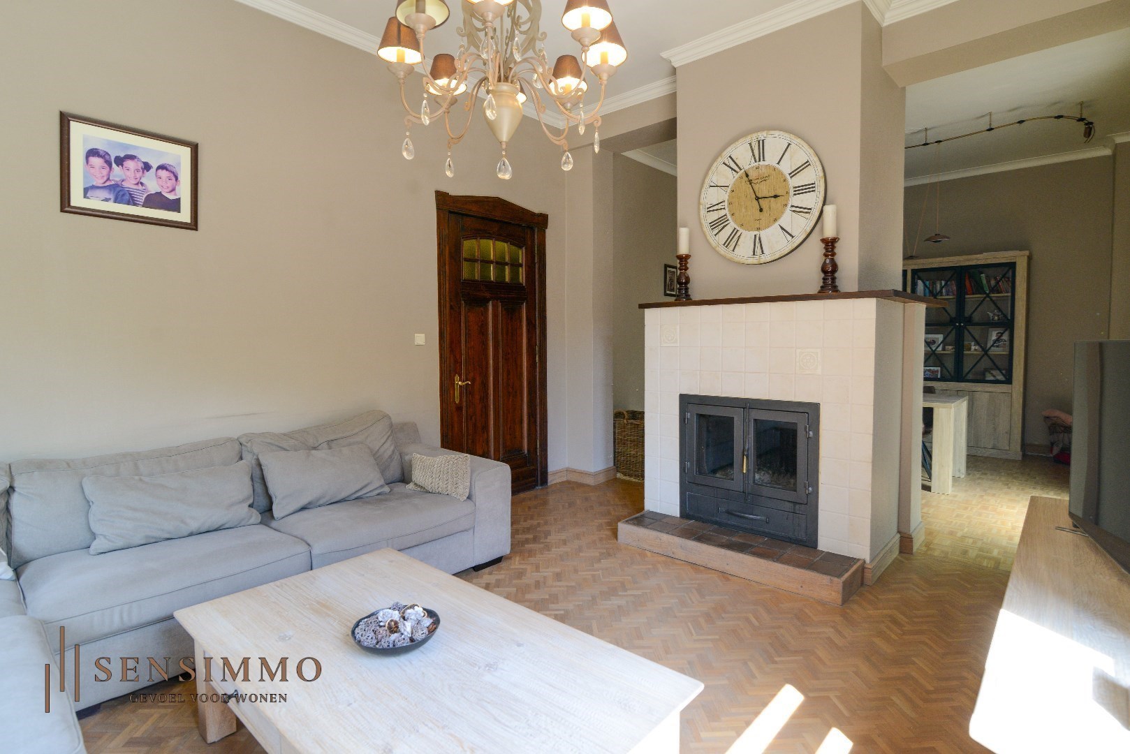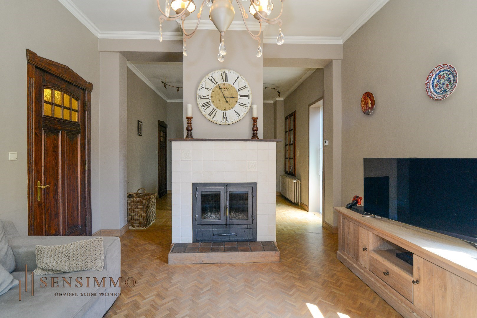 De open haard in de woonkamer zorgt voor een warme en uitnodigende sfeer, ideaal voor gezellige avonden met vrienden en familie. De hoge plafonds in combinatie met de prachtige parketvloer voegen een vleugje elegantie toe aan elke kamer, waardoor u zich meteen thuis voelt.