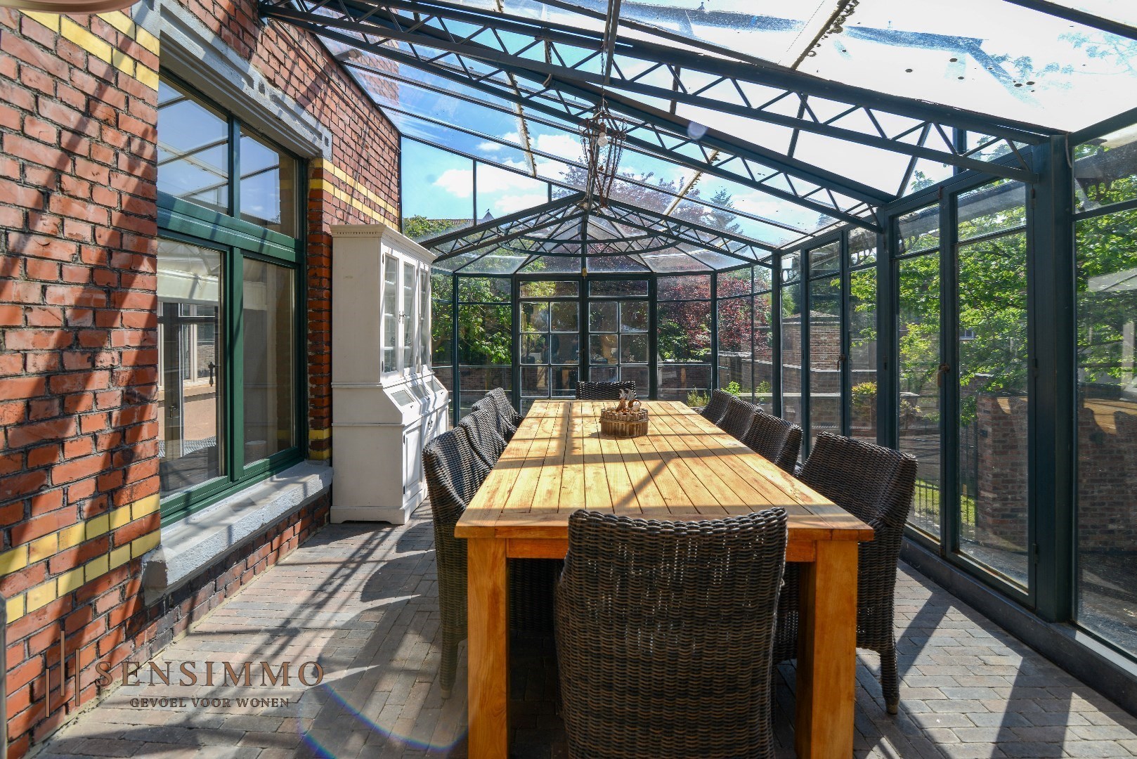 Wat deze woonst exclusief maakt, is de orangerie. Deze elegante uitbreiding van het herenhuis biedt een overvloed aan natuurlijke lichtinval en is de ideale plaats om lekker te ontspannen of uw gasten te ontvangen.