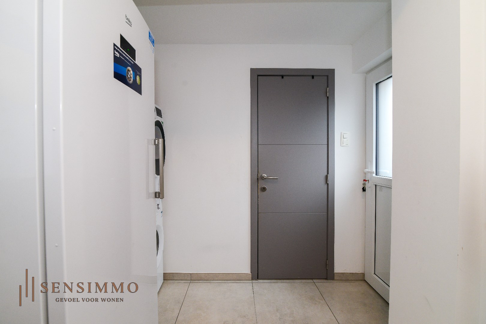• Gelijkvloers: Hal, woonkamer, gesloten keuken met alle nodige apparatuur, badkamer voorzien van een toilet en inloopdouche.