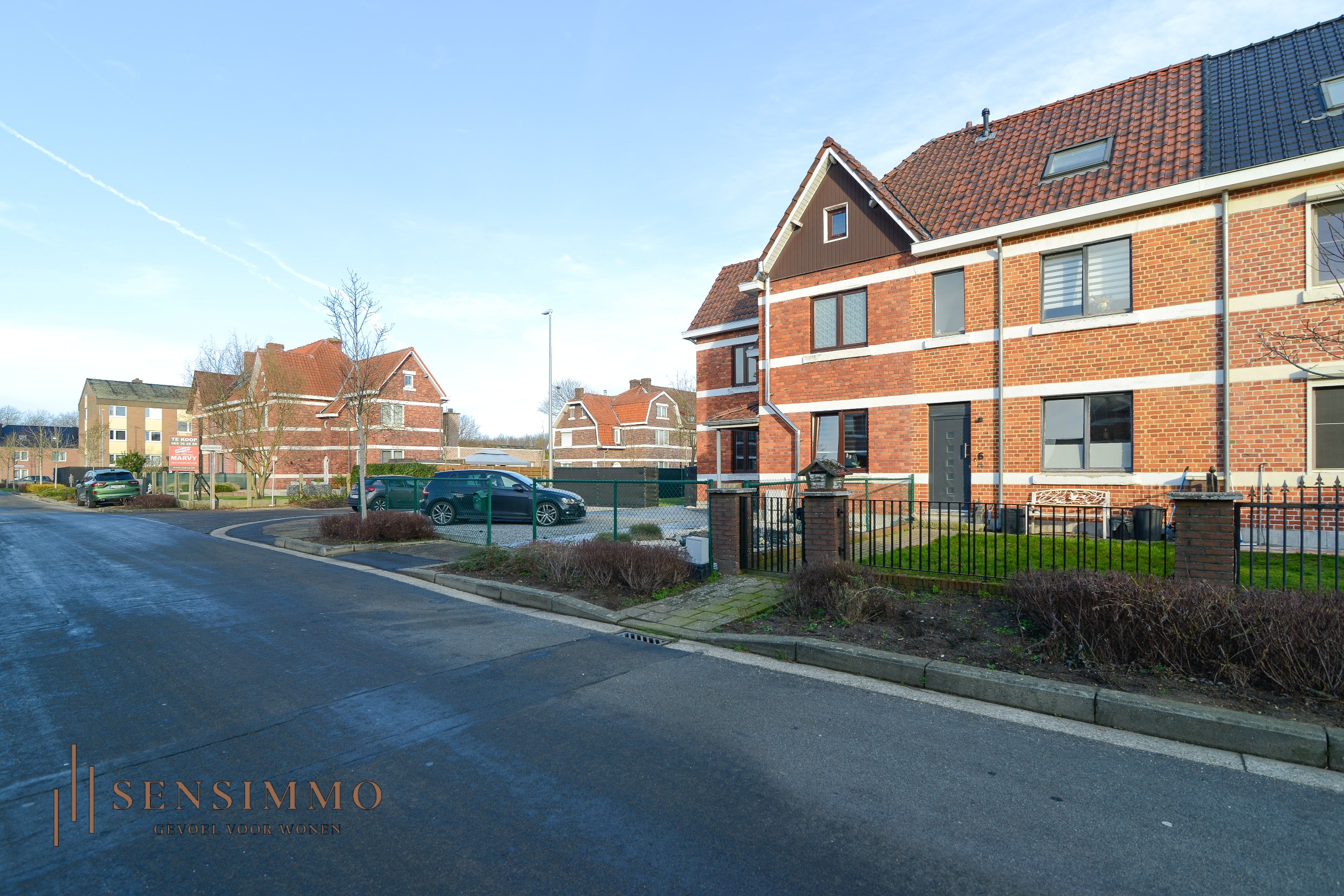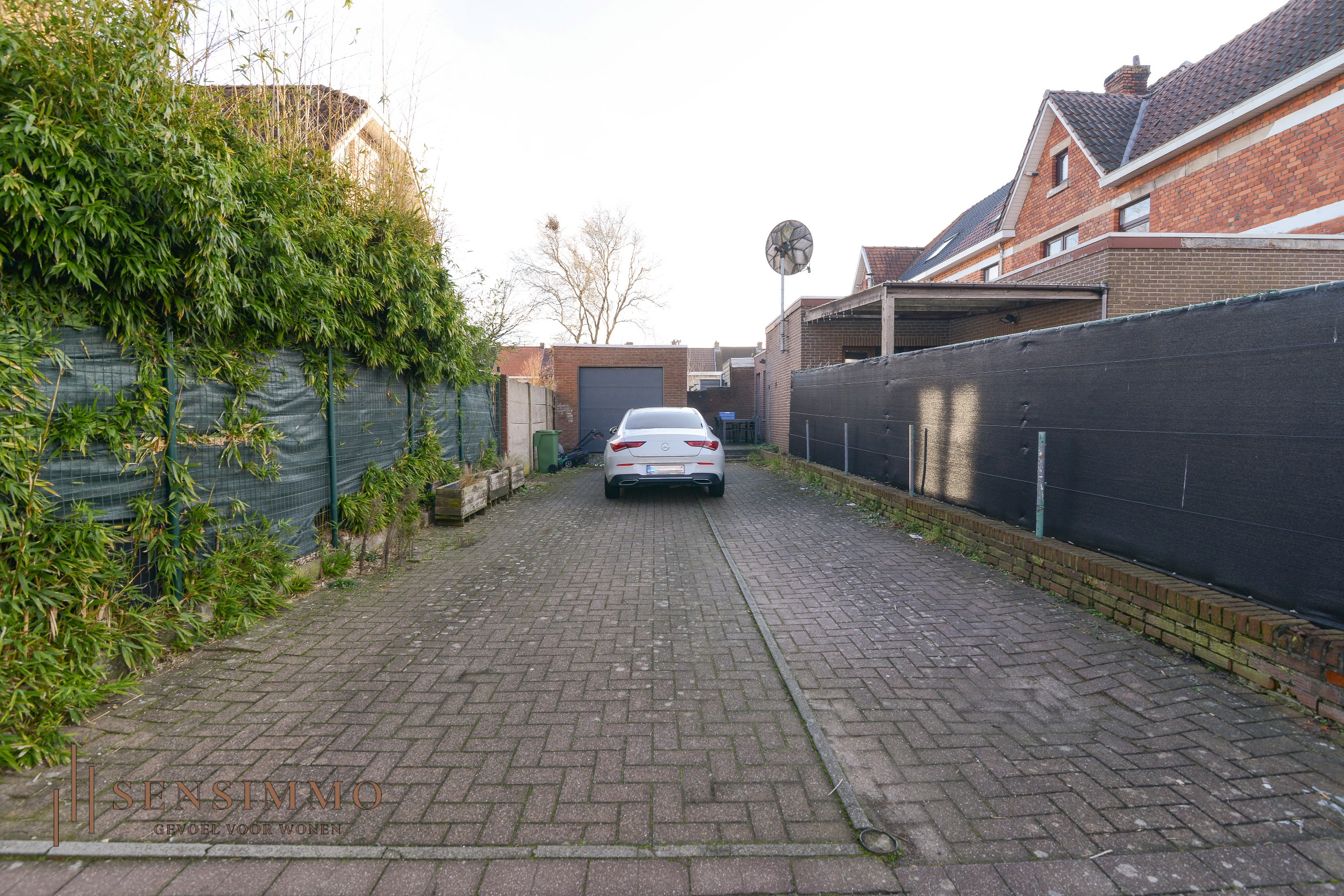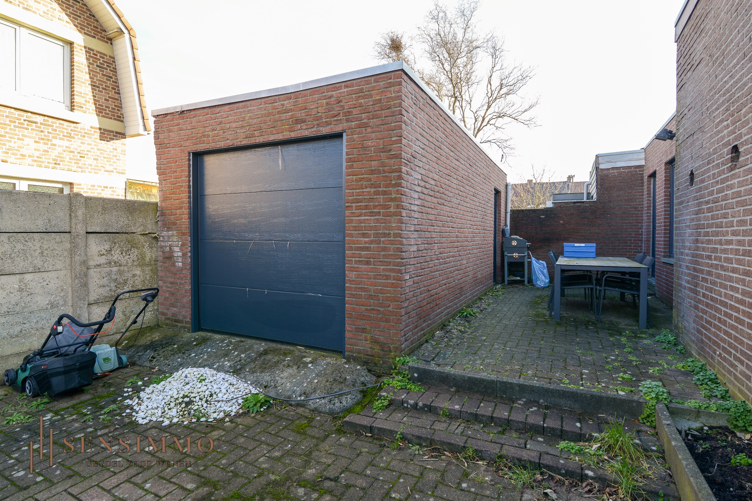 Achteraan beschikt de woning over een aangename tuin en is ze bereikbaar met de auto. Bovendien is er een achteringang met gemetste garage, wat zorgt voor extra comfort en parkeergelegenheid.