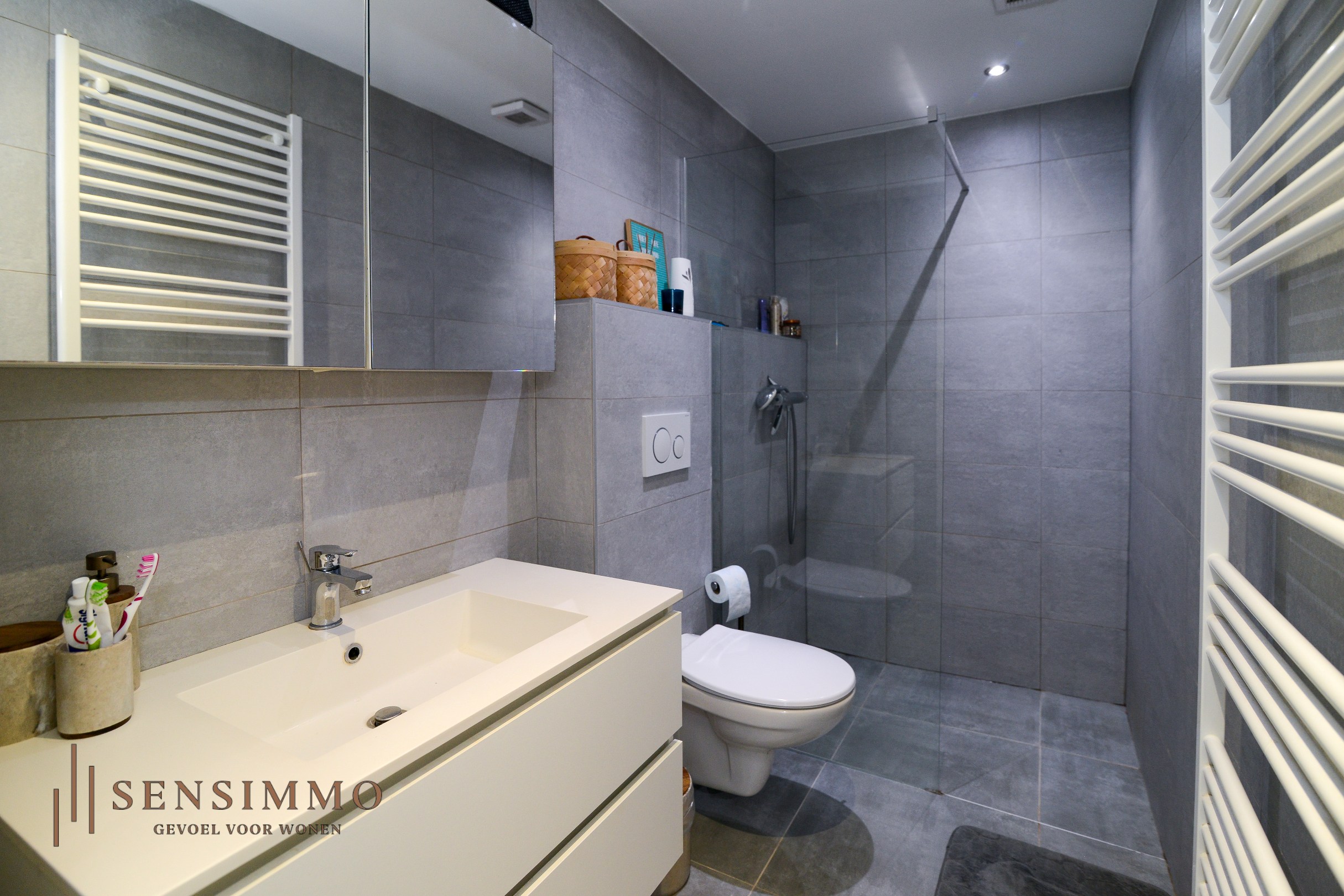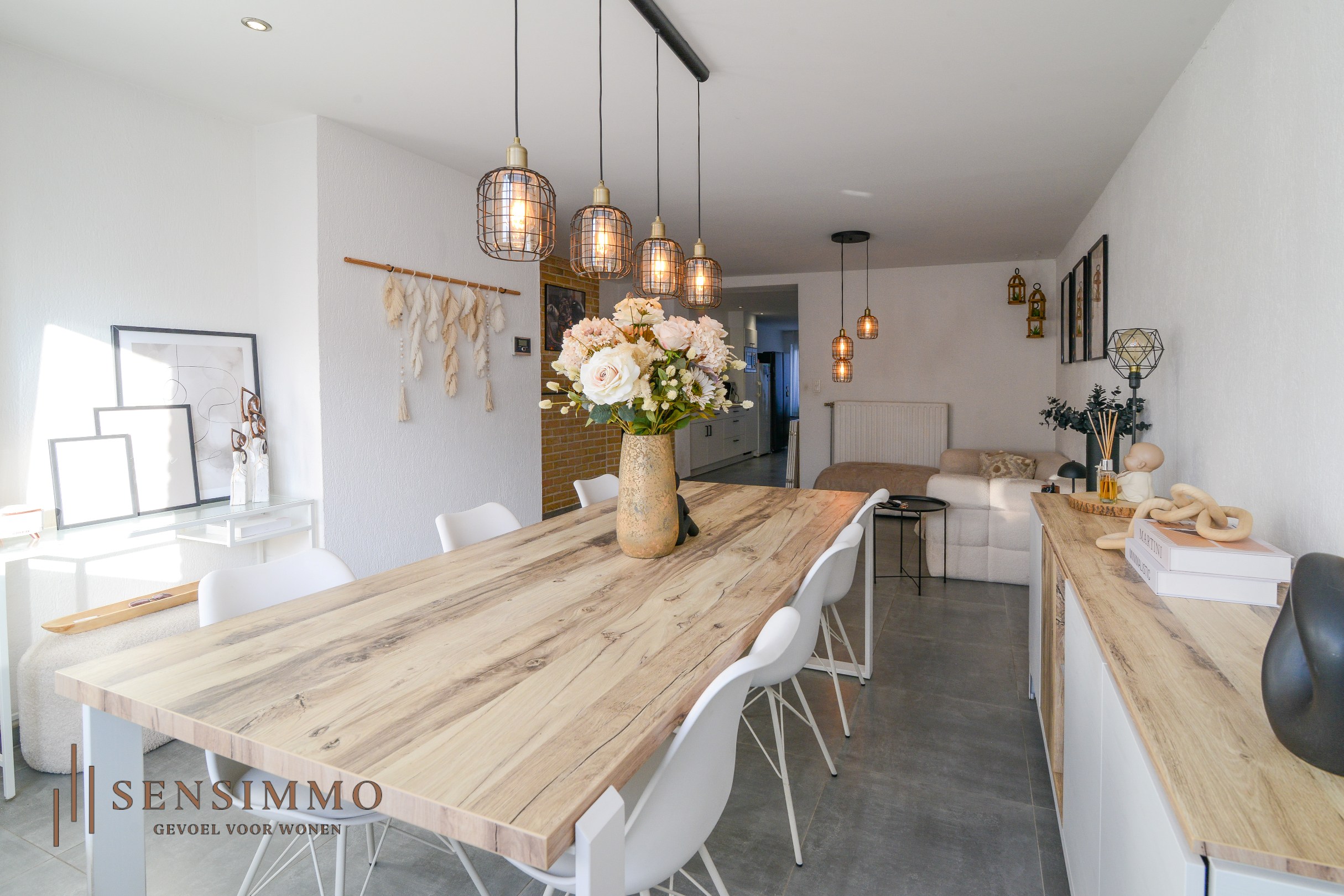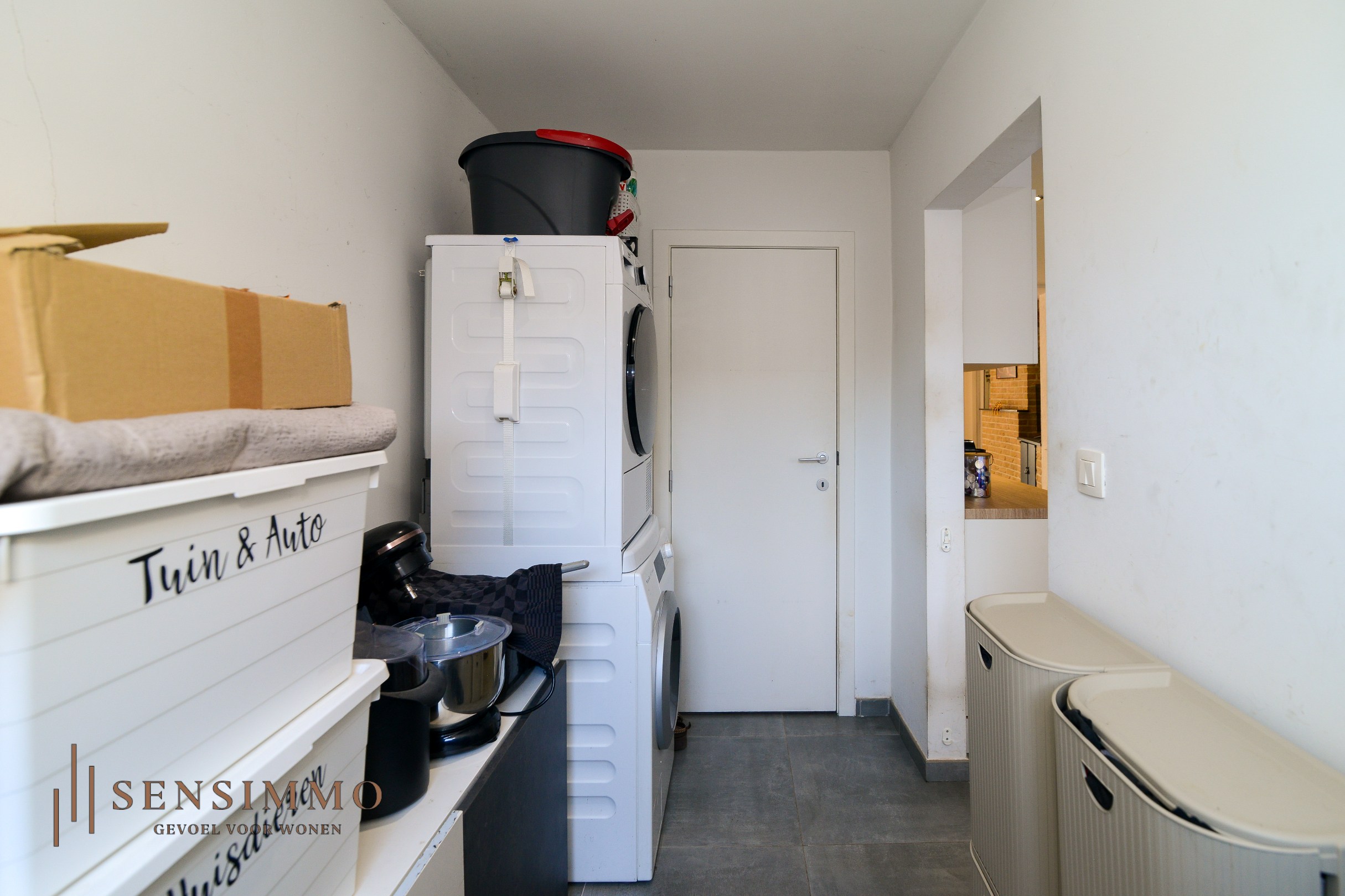 Achteraan beschikt de woning over een aangename tuin en is ze bereikbaar met de auto. Bovendien is er een achteringang met gemetste garage, wat zorgt voor extra comfort en parkeergelegenheid.