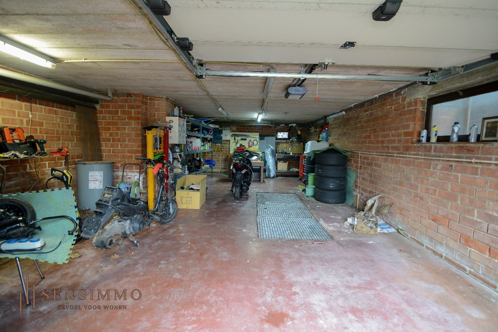 Buiten biedt het perceel extra opbergruimte met een tuinhuis van 10 m², terwijl de dubbele garage ideaal is voor autoliefhebbers of ondernemers in de autohandel, een activiteit die hier al meer dan tien jaar succesvol wordt uitgeoefend. Ook een kapperszaak of andere commerciële invullingen zijn perfect mogelijk dankzij de veelzijdige indeling en gunstige ligging.