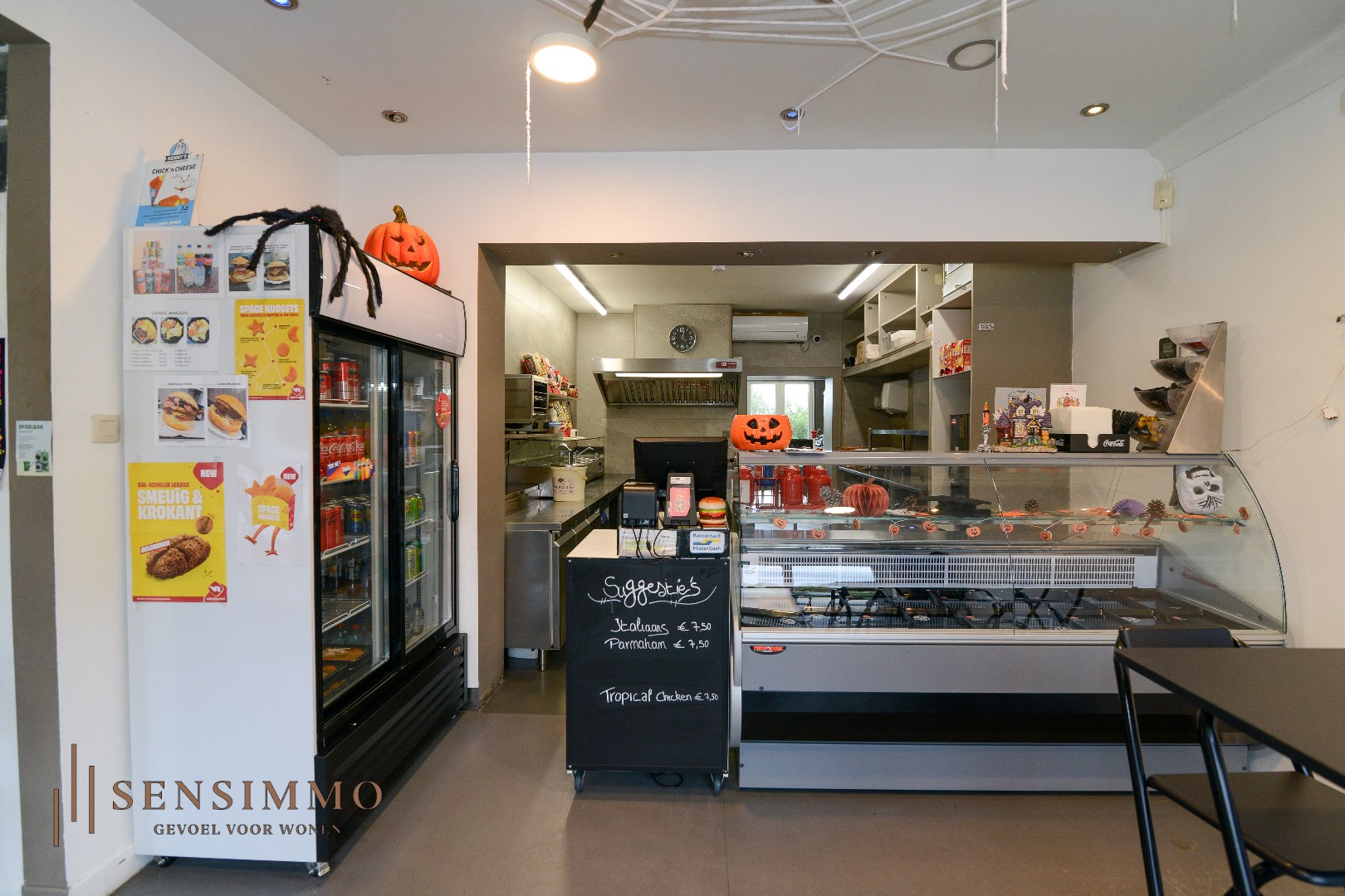 Indeling: op het gelijkvloers bevindt zich het handelsgedeelte, waar momenteel een succesvolle broodjesbar wordt uitgebaat. De woning en handelszaak worden samen verkocht, inclusief vennootschap, inboedel en bestaand cliënteel/goodwill. Het betreft een goed draaiende horecazaak, volledig instapklaar en rendabel.