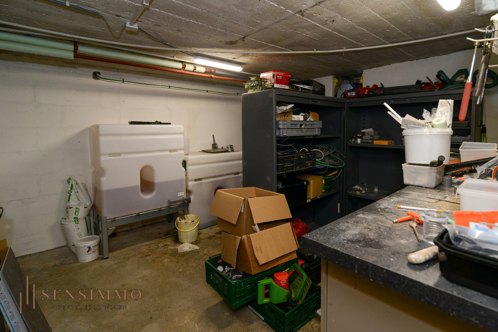 Indeling: handelsgedeelte met ingerichte keuken en inboedel, toegang via de poort voor leveringen, ingerichte keuken, toilet. Verdieping 1: ruime slaapkamer 1 met en suite inloopdouche, ruime slaapkamer 2 met en suite badkamer, kinderkamer/berging. Verdieping 2: ruim en lichtrijke woonkamer met sfeerhaard, eetkamer, open keuken, berging. De kelder is goed afgewerkt en doet dienst al bureau/hobbykamer en opslagplaats. Via het handelsgedeelte is er rechtstreeks toegang tot de prachtige tuin met zwemvijver.